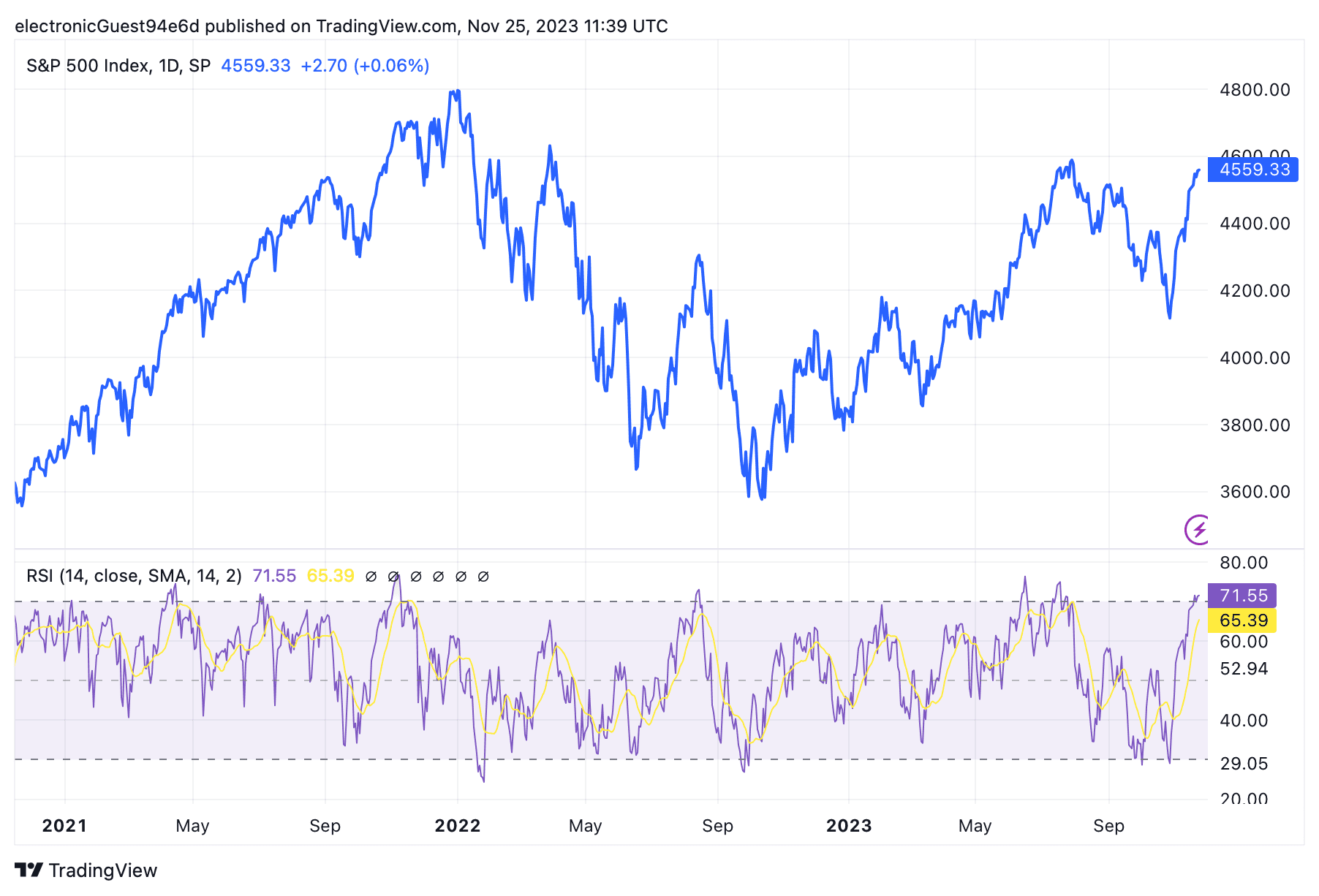 S&P 500 overbought on momentum indicator